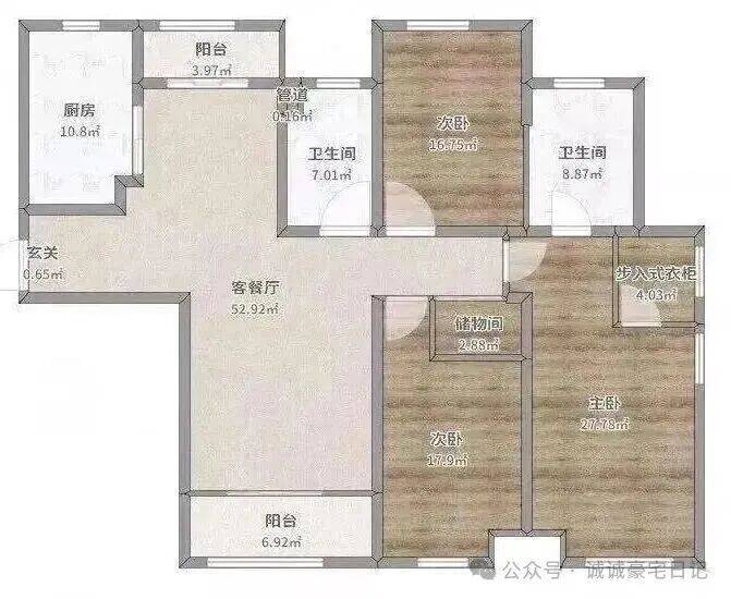 建面约200平的3房2厅2卫↓