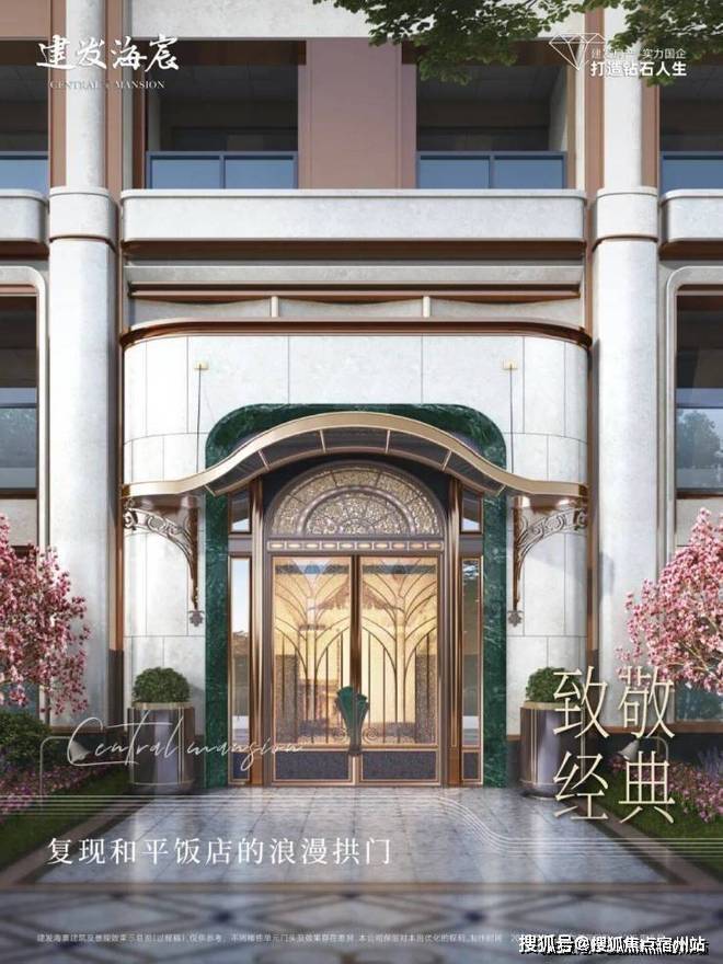 建发海宸售楼处电话:400-8818-994(售楼处最新电话)上海杨浦建发海宸官方电话:400-8818-994✔(官方售楼处预约看房热线)萃取东方色谱精粹,建发·海宸甄选丝箔流金、东方雅铜,青釉奢蓝,以当代笔触晕染立面,令传统色彩在空间生长为永恒的诗意,「入户门头」形取和平饭店经典拱门,配以碧绿色天然石材门套、彩玻花窗,重现百年外滩门廊的尊崇仪式。