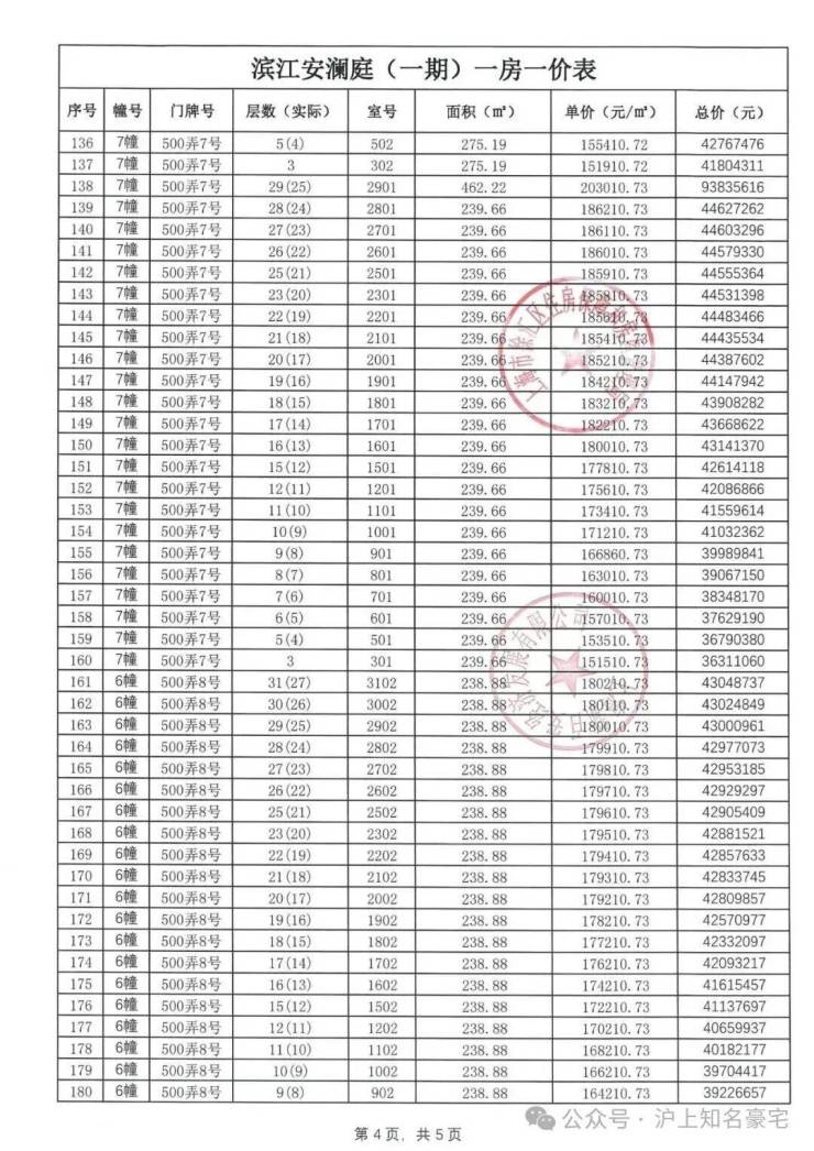 建面约245㎡,总价3700-4800万,折算单价15.1-19.6万元/㎡