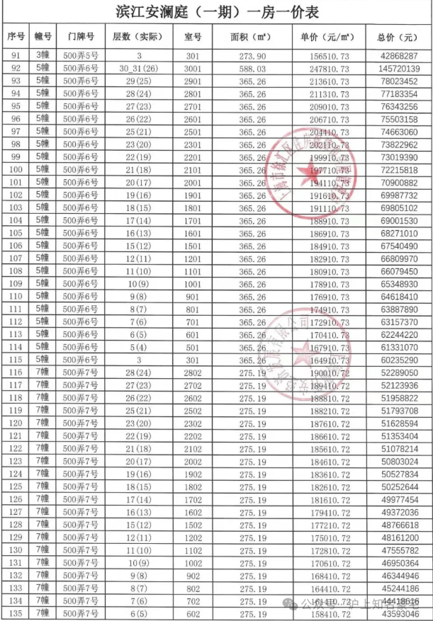 建面约195㎡,总价2700-3400万,折算单价约13.8-17.5万元/㎡