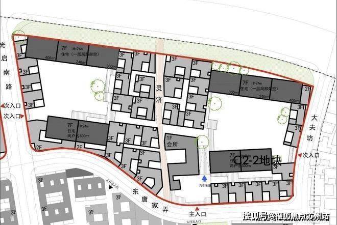 所以实施方案设计分散成三个大组团,绿发新梓园就是乔家路A地块。