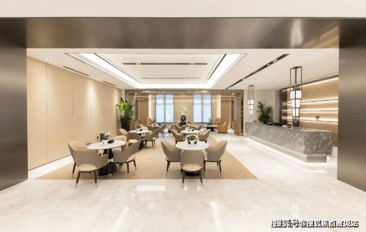 再来看看人行入户大堂,挑高的精装大堂搭配宝华标志性的太阳花装饰,连天花板都嵌入了星空灯光,整个大堂仿若拥有了星级酒店的落客体验。