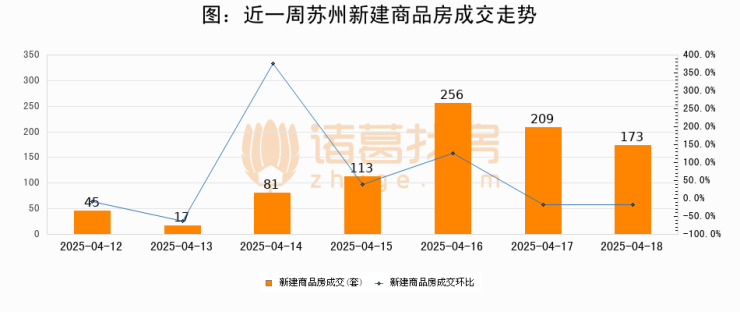【苏州成交日报】04月18日新房成交173套、二手房334套;涨价房源58套