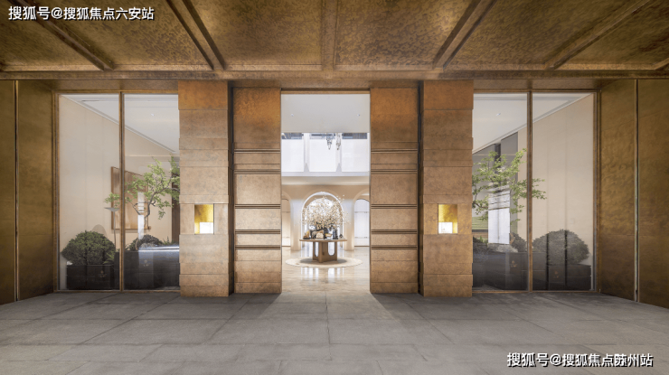 建筑外立面融合杭扇元素与西方经典格构,采用奢石、玻璃幕墙与金属线条,搭配非遗工艺编织门把手、镂花吊顶等细节,将东方雅奢美学融入现代建筑。