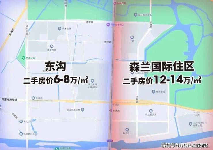 比如高行,西面是动迁房和老小区云集的东沟,二手价格只有6-8万;东面则是配套丰富的森兰国际住区,二手价格高达12-14万。