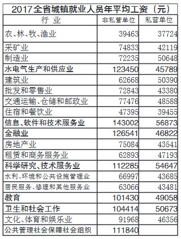 省统计局公布的19个行业的平均工资水平,分行业门类看,年平均工资较高的三个行业分别是信息传输、软件和信息技术服务业,金融业,电力、热力、燃气及水生产和供应业。这三个行业2016年也排前三。排在第四的是科学研究、技术服务业。