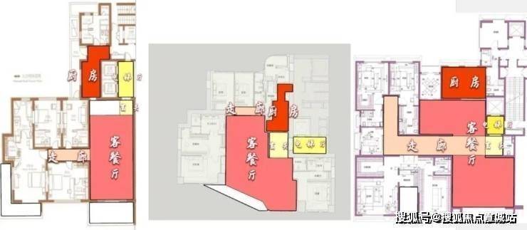 露香园·天誉约489㎡的整体面宽是4个产品中最宽的,达到了约26米,比另外三个产品多了4米左右,相当于多出了一个开间,另外三个指标性项目互有来回,包含玄关空间尺度、厨房空间尺度、次卧面积尺度,整体是一个以大面宽为核心竞争力,较为均衡的产品。