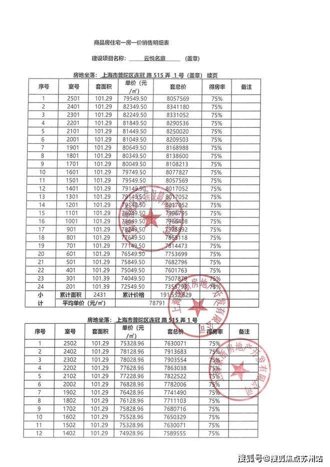 本批次一房一价表如下