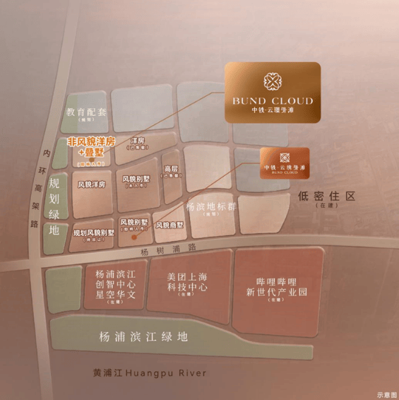 中铁·云璟外滩位于杨浦滨江九宫格I4-01地块(97街坊),建设用地面积约1.65公顷,容积率1.8,建筑限高24米。