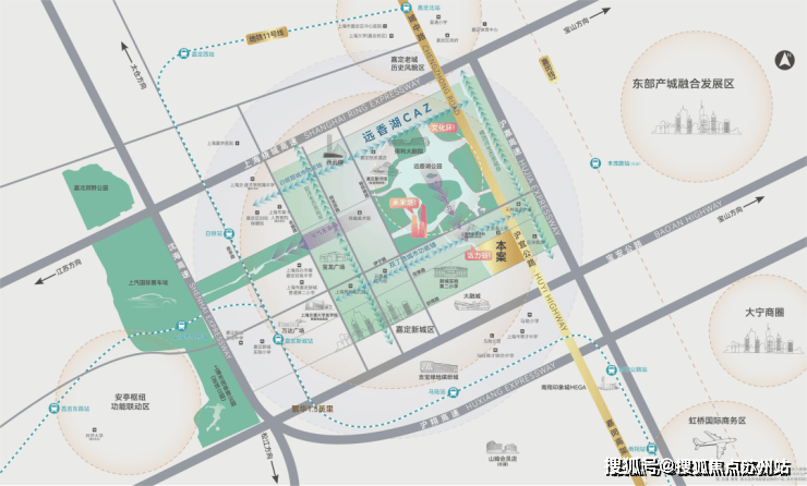 项目就位于远香湖CAZ核心,远香湖CAZ位于嘉定新城的核心区域,是嘉定新城的综合功能中心、城市形象的集中展现区;