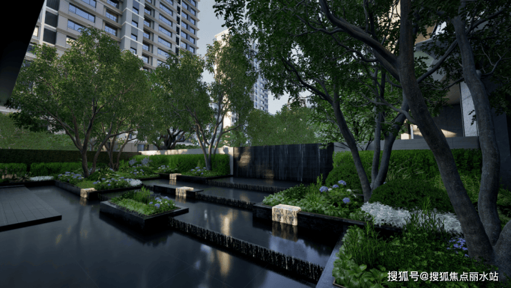 目前实景示范区已经公开,整个项目由日清设计的宋照青亲自执笔,打造出约340㎡的下沉庭院.