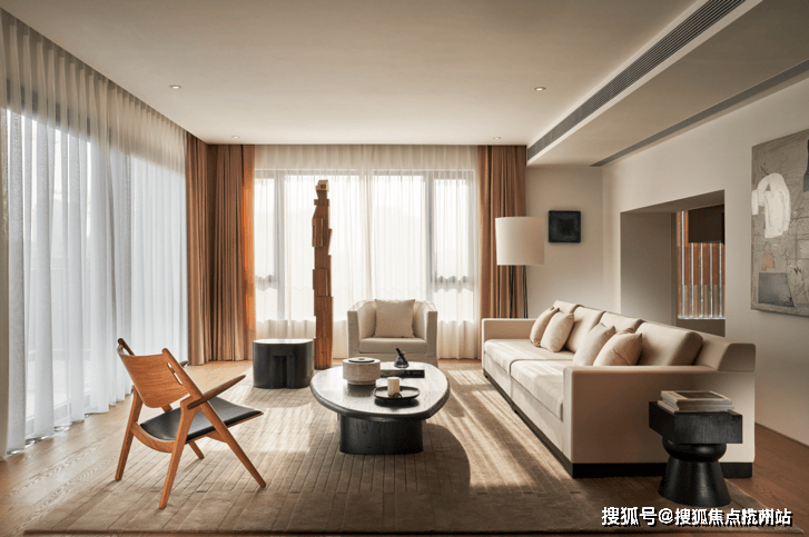 深研当代高净值家庭生活方式,沁风雅苑居住单元均为双层叠加,以轩阔的营造尺度、尊崇的居住礼序、奢适的空间品质,礼待雅致的生活品位,Neri&Hu秉持温暖简奢的设计理念,致敬生活的居住艺术。