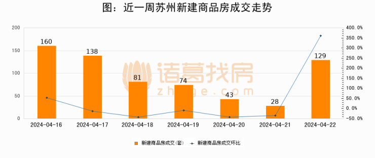 【苏州成交日报】04月22日新房成交129套、二手房313套;涨价房源162套