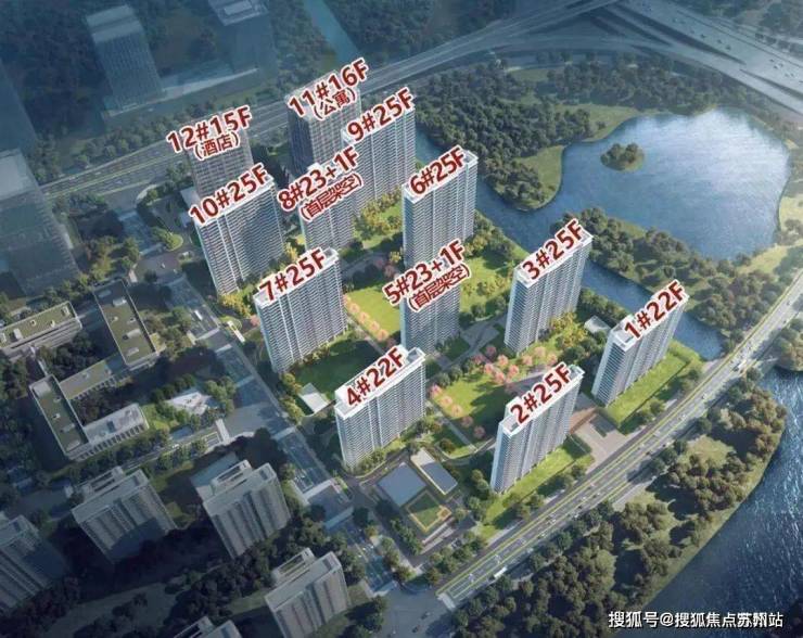 拟建10幢22-25F高层住宅+1幢16F公寓+1幢15F酒店。其中,5#、8#楼首层架空, 11#楼为16F公寓产品,12#楼为15F酒店。
