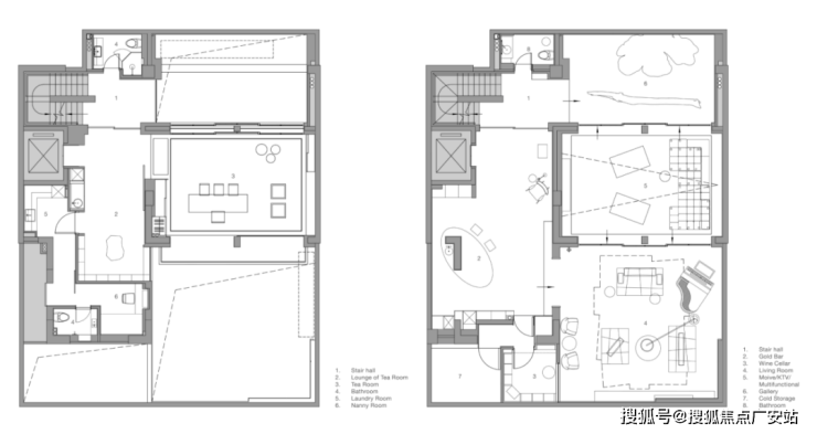 地下室层是娱乐和家庭聚会的主要空间,因此,我们将空间设计得更现代和随意。也正是在这里,我们突破了室内空间中跨文化对话的界限。