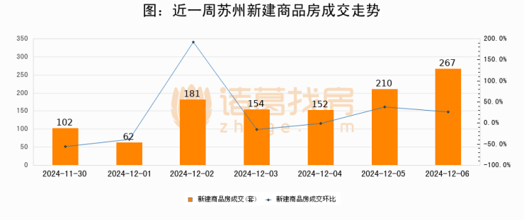 【苏州成交日报】12月06日新房成交267套、二手房455套;涨价房源98套