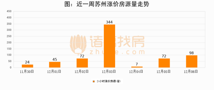 根据诸葛找房数据显示,苏州24小时涨价房源量为98套,较12月05日增加26套,环比上涨36.1%。与此同时,涨价房源占比小幅扩大,业主信心有所提升。