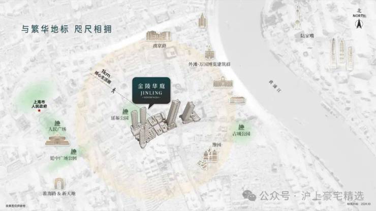 嘉里・金陵华庭的地段优势,堪称“天赋异禀”,甚至可以说“出生即在罗马”。项目精准扎根黄浦区金陵东路核心板块,东至福建南路、南至人民路、西至浙江南路、北至金陵东路,与外滩的直线距离仅260米——这意味着,业主无需驱车,步行3分钟就能踏上外滩的滨江步道,清晨看黄浦江面上的第一缕晨光,傍晚听江风裹挟着万国建筑的历史回响,这样的“零距离外滩生活”,在上海新盘市场中近乎“独一份”。