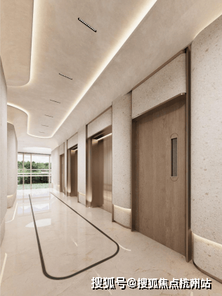 381户型公区电梯厅以独特的弧形墙设计引人注目,流畅的线条从吊顶自然延伸至墙面,精心雕琢的弧线不仅赋予了空间视觉上的灵动与层次感,在简洁与现代之间,营造出温馨而富有质感的归家氛围。