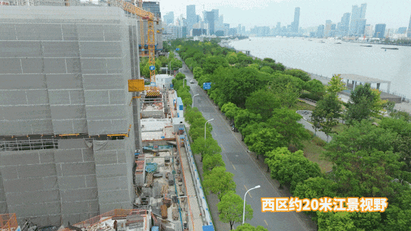 航拍模拟了项目20米(约6层)以上的江景视野,大家感受下。
