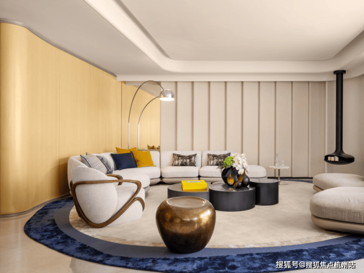 吊顶的优雅曲线与地面线条遥相呼应,营造出从室内到室外的流畅过渡,成就空间的层次美学与视觉延展。