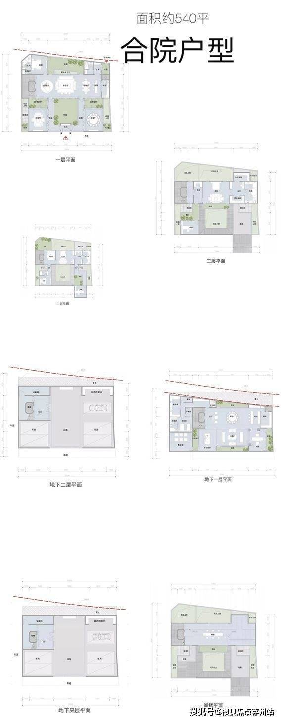 ·风貌联排合院151套(建面约250-1200㎡,主力户型约300-500㎡)