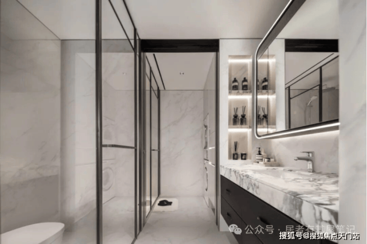 酒店式四分离公卫:实现独立洗漱台、卫生间、淋浴间、洗衣区互不打扰,将酒店化体验引入住宅,早高峰时期也能做到出入有序.