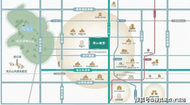 核心区位:平江新城核心区,南邻苏州古城,区域定位为高端居住功能区,周边政府机构集中(姑苏区政府及9大行政中心)