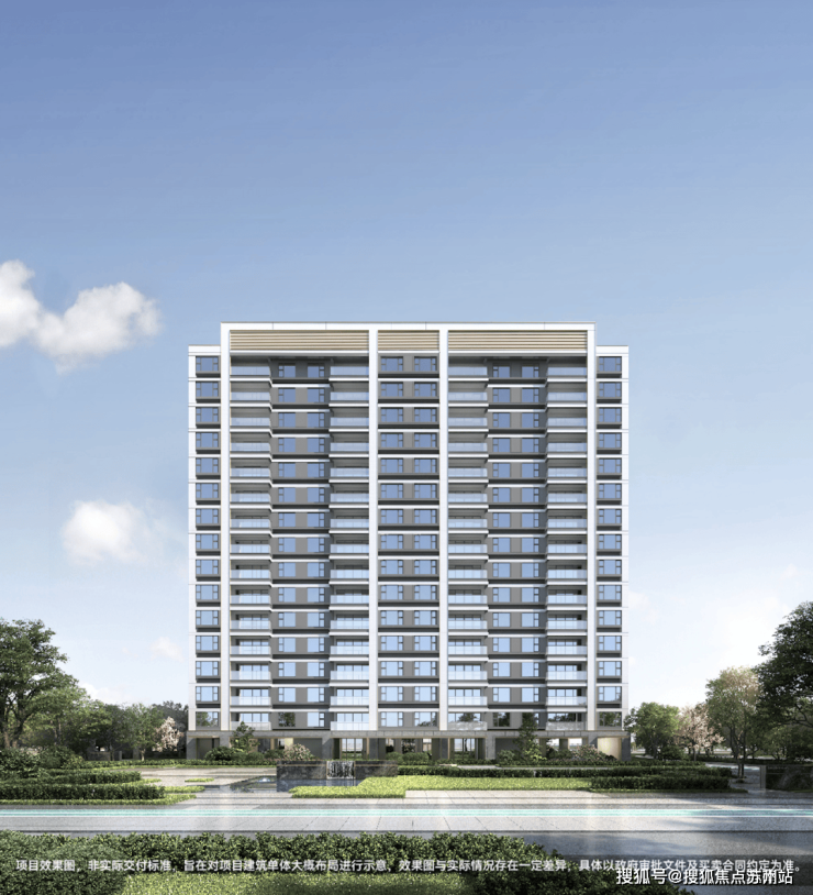 建筑外立面采用现代简约的风格,搭配有序的横线线条,以米白色为主并搭配一定香槟金暖色调,通过分段式化解建筑尺度,丰富造型,整体时尚且更为耐看。