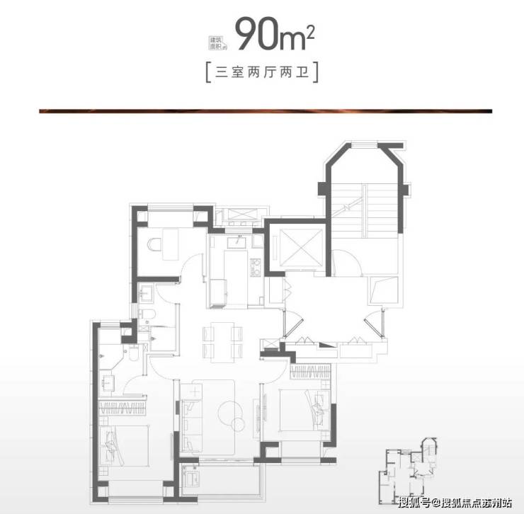 建面约90㎡的三房两厅两卫
