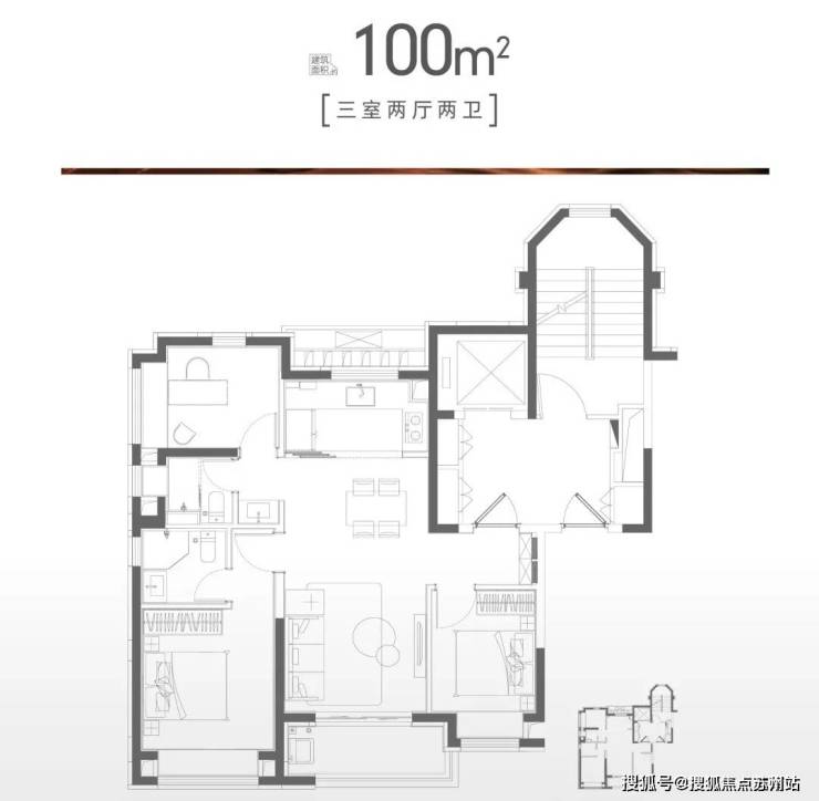 建面约100㎡的三房两厅两卫