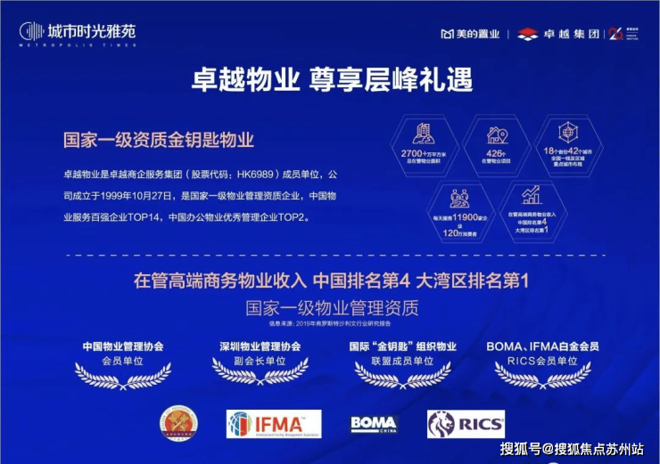 无微不至的服务,对业主竭尽所能的帮助,更能给业主一份家的温度。卓越物业是卓越商企服务集团(股票代码:HK6989)成员单位,公司成立于1999年10月27日,是国家一级物业管理资质企业,中国物业百强企业TOP14,中国办公物业优秀管理企业TOP2,服务单位为阿里巴巴、华为等。
