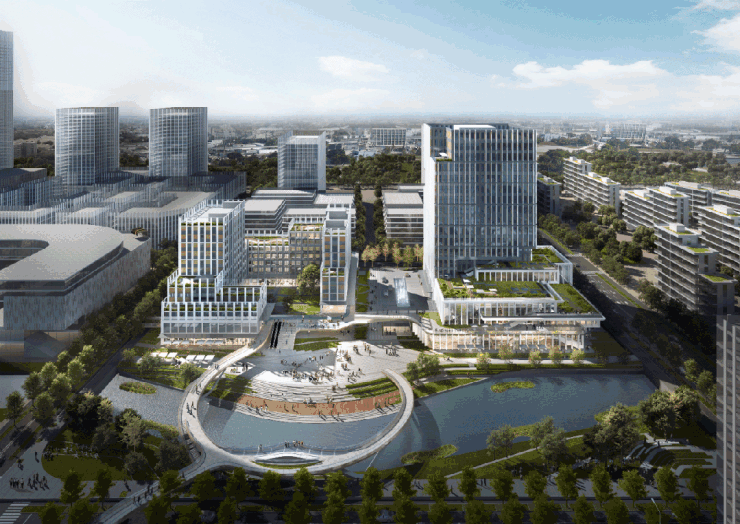 上海金鼎以山水城市建筑理念,以水为脉,利用项目三面环水的独特规划优势,将水引入地块内,打造多维滨水文化平台、滨水开放空间,提升公共界面景观环境和空间文化品质。同时这里还将打造约3500㎡的演艺中心、约40米的潜水中心等文化娱乐配套与精品酒店、层层叠落的花园办公、高端公寓、精品商业连接融合,筑起一座活力无限的休闲乐园。