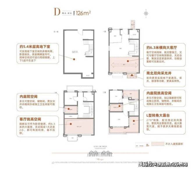 约5.4米层高地下室,纵享大尺度空间,加上大面积挑高可塑方案,可挑战N个126㎡的实用极限。