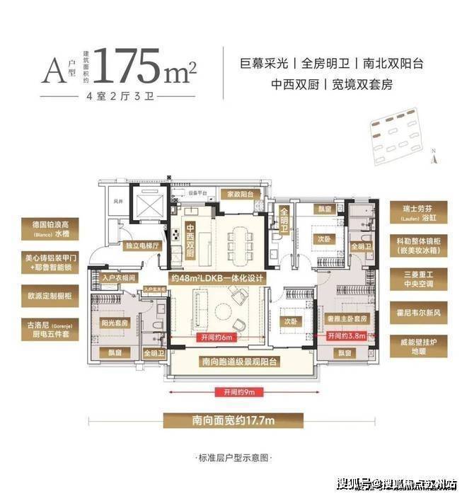 配置奢阔双套房、全系明卫、中西双厨、南北双阳台