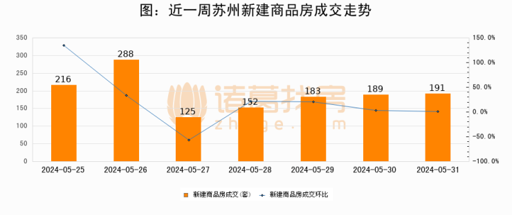 【苏州成交日报】05月31日新房成交191套、二手房279套;涨价房源76套