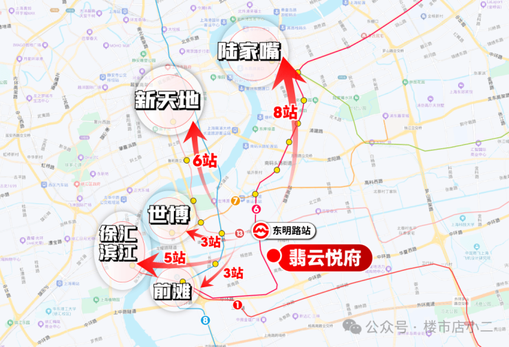 交通:翡雲悦府6号线、13号线双轨交环绕,距离东明路地铁站直线约600米,是真正步行可达的双轨交正地铁盘。3站前滩/世博、5站徐汇滨江、6站新天地/世纪大道、8站南京西路/陆家嘴。