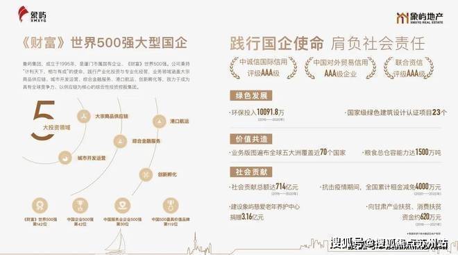 象屿地产成立于1993年,是《财富》世界500强象屿集团旗下全资子公司,以精品住宅开启了30年滚动开发,业务范围涵盖地产开发、商业运营、物业服务、工程代建四大板块,位居2023年中国地产百强排名59位,2023年上半年住宅销售业绩排名31位,堪称稳健优质国企的代表。