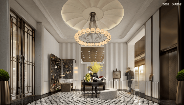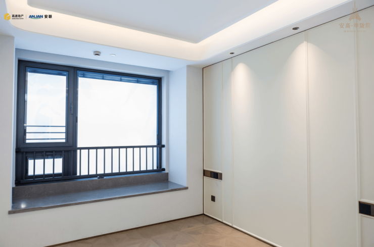 建面约170㎡四房两厅三卫,是上海中环罕见的奢侈大平层,安高采用电梯双开门的类一梯一户设计.