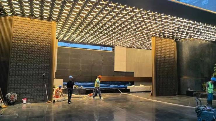 客厅巨幅背景墙,大理石花纹做到了方向上的统一,这对施工品质的要求非常高.
