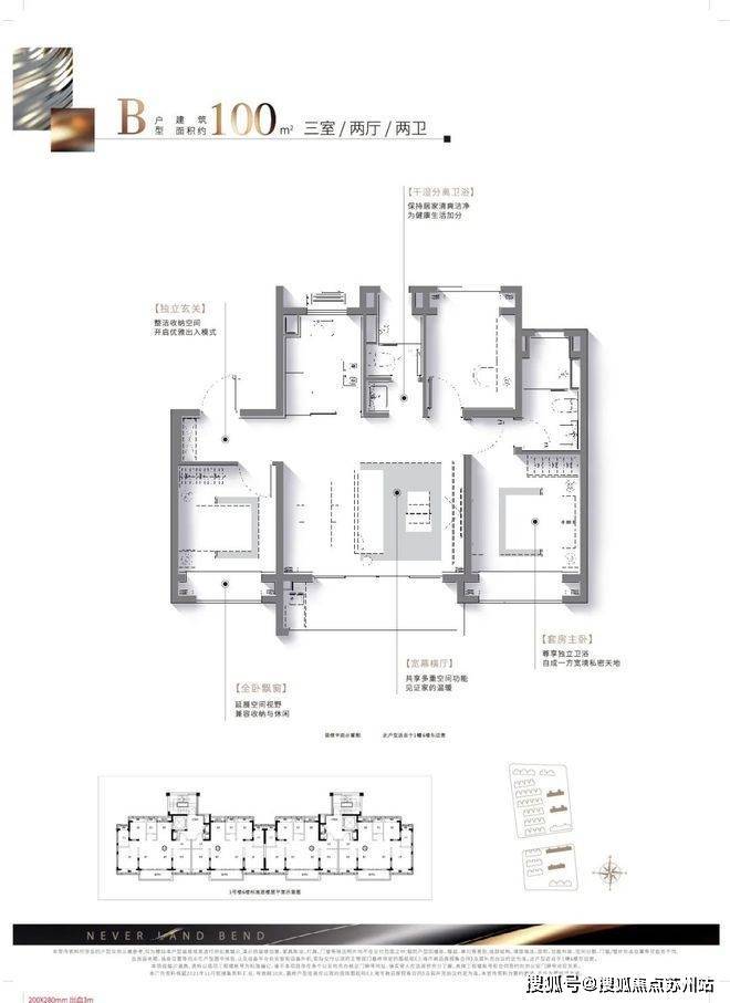 建面约100㎡宽厅三房,改善家庭至优选:在南向三开间的基础上,该户型“创新横向宽厅,营造百平米少有的客厅尺度“打造3.5南向面宽。