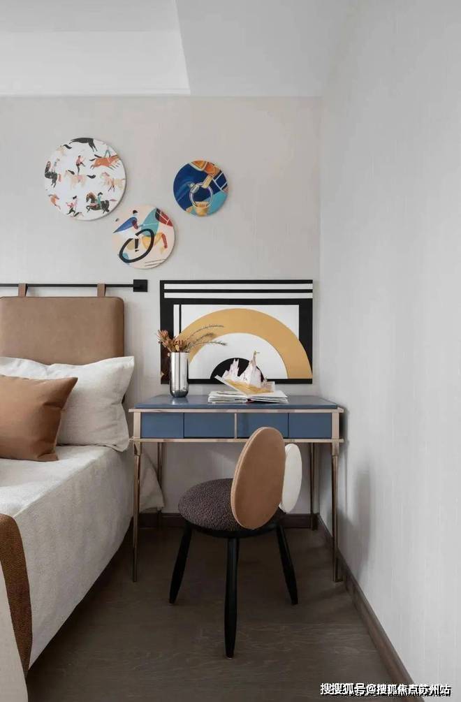而男孩房的设计更显得元气满满,不管是吊灯或是床头柜,还是书桌设计都更具一派属于少年的天真烂漫之感。