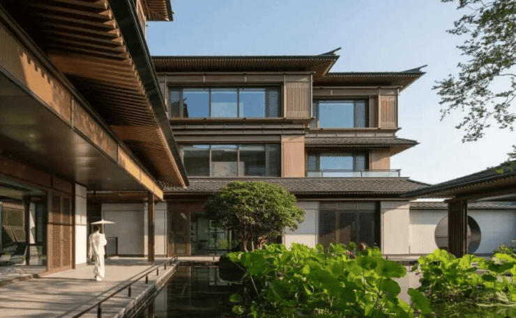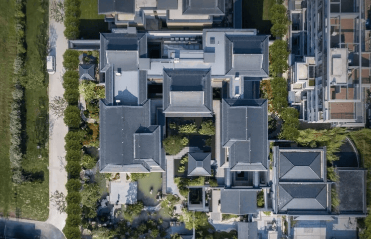 因此,当面对保亿湘湖六庄每栋6065㎡-6676㎡不等的规划要求时, 青墨建筑设计与业主保亿集团所希望看到的,除了项目能够以亿级“官邸大宅”的形态出现外, 又叠加了 在杭州山水文化与湘湖自然风景互构的基底上,塑造一个适应当代生活需求的“私家园囿”期许, 从而使江南山水意象以园林形式从一种审美追求转移至物质可寻的状态。