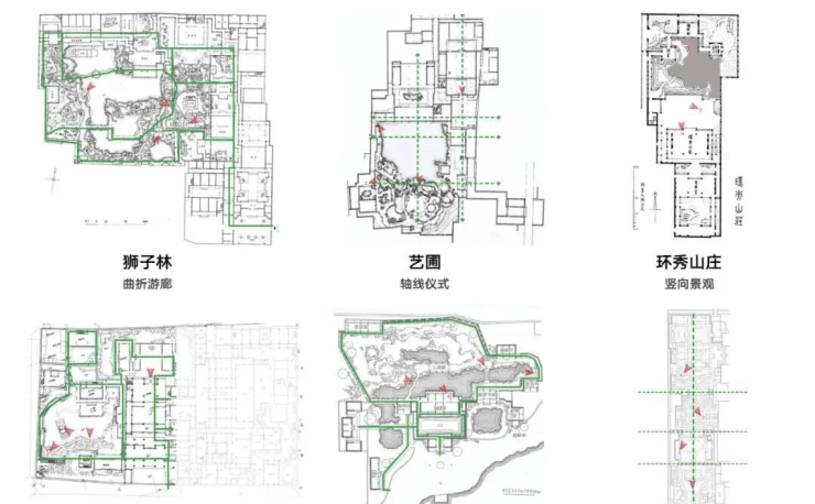 宋式园林的庭院系统,与明清江南园林相比更加注重空间的精神性,注重游园路径上的曲折变化带来的静观与动观感受 搜建筑