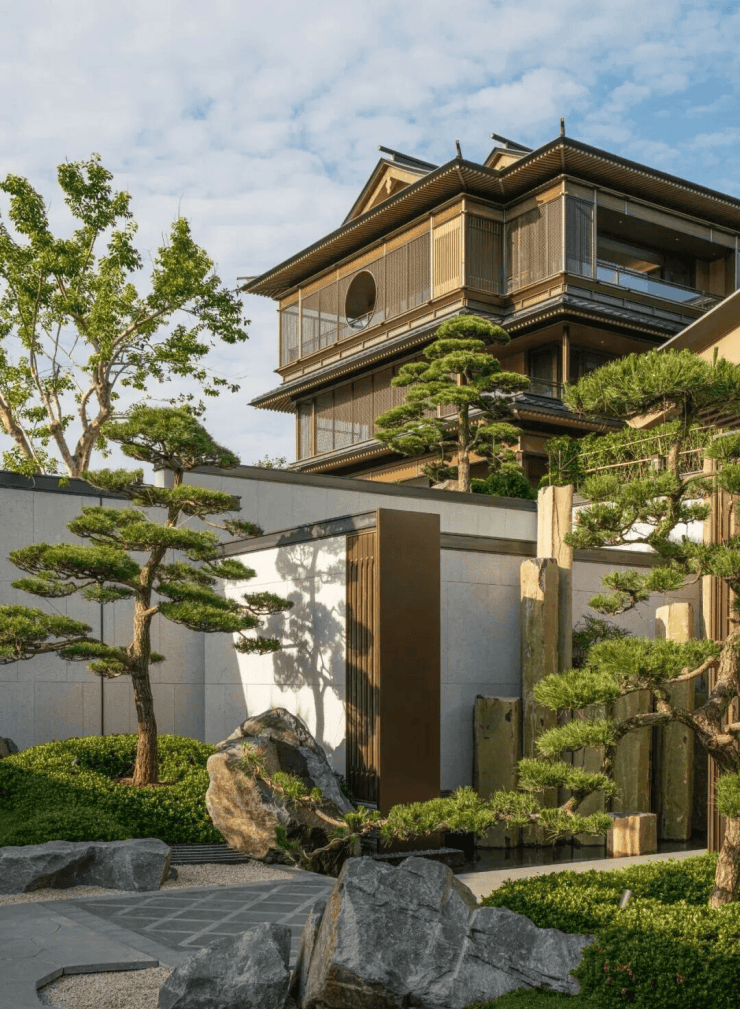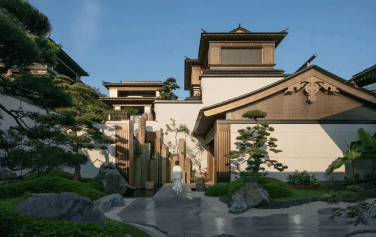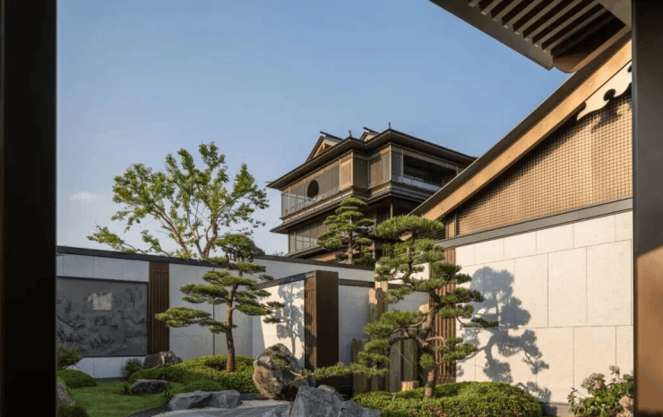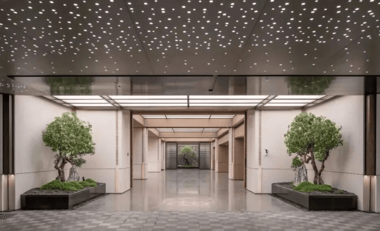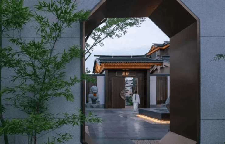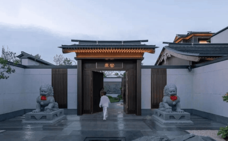 从整个动线布局来看,设计采用了经典的 “巷门-院门-宅门”三进制院落格局,以江南院落再现东方传统礼序。从园区巷门开始层层递进,到一户一府的院门,再至入户宅门,表现出大户人家的归家气场,带来一种尊贵秩序的仪式感,也将中式生活的画卷次第展开。
