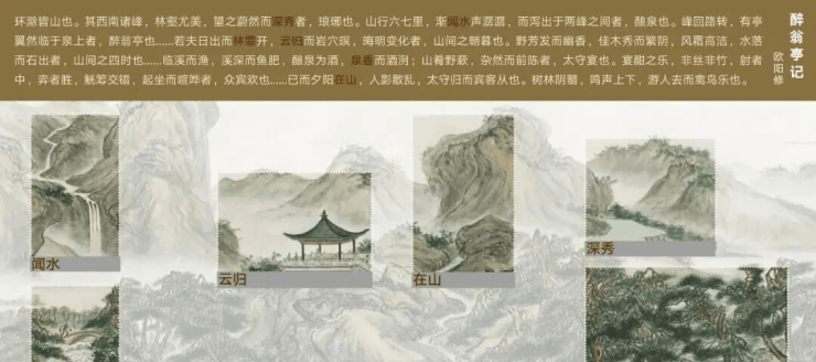 这些构成了我们设计思路的核心,进而确定了六栋官邸大宅之间的图底关系, 在此基础上以《醉翁亭记》为引子,精心构思了“泉香、深秀、闻水、在山、林霏、云归”命名之法, 为的就是重新审视源远流长的中国山水人居文化,凸显每一栋官邸大宅的文化内涵。