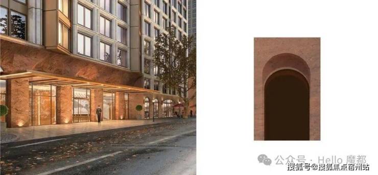 提取上海和平饭店、洛克·外滩源等经典建筑肌理,以"连续罗马券"的建筑基座,在保留开阔门楣尺度的同时,减轻古典建筑的厚重感,使建筑底座与体身充满磅礴的美学张力。