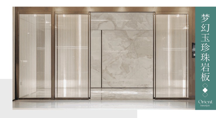 地下归家大堂用材选取意大利进口岩板,色泽温润,和谐统一。人脸识别自动移门便捷实用,金属夹丝玻璃美观大气,开阖家的尊崇与安心。