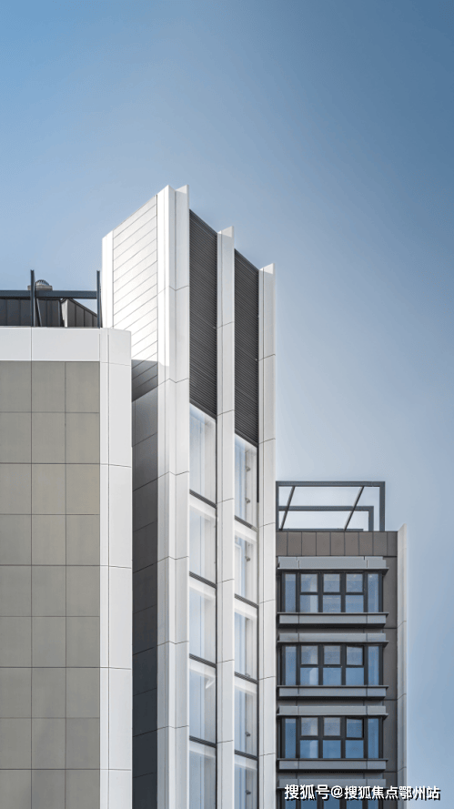 项目是由格力地产与罗杰斯事务所携手打造,塔楼外立面用大面积采用玻璃、铝板、及纤维水泥板,阳台采用钢结构吊台承重,三面均为玻璃面。裙楼以及会所采用明黄色钢结构楼梯,强调工艺技术与时代感。