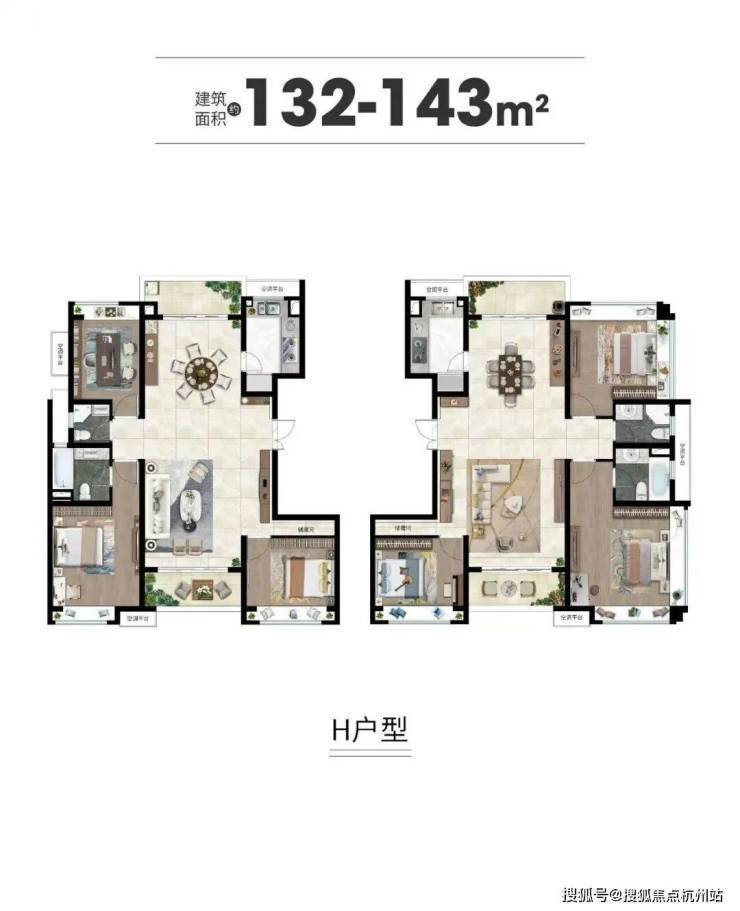 【御沁园】七期将推出3栋18F高层住宅,两梯两户无连廊设计;将推建面约132~172㎡三房户型,其中: